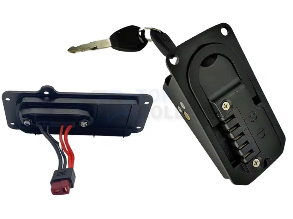 "A" változat: ENGWE felső akkumulátor-fedél zárral Ez az alkatrész az akkumulátoregységhez rögzíthető, és a kerékpár fő vezérlő- és biztonsági elemeként szolgál.