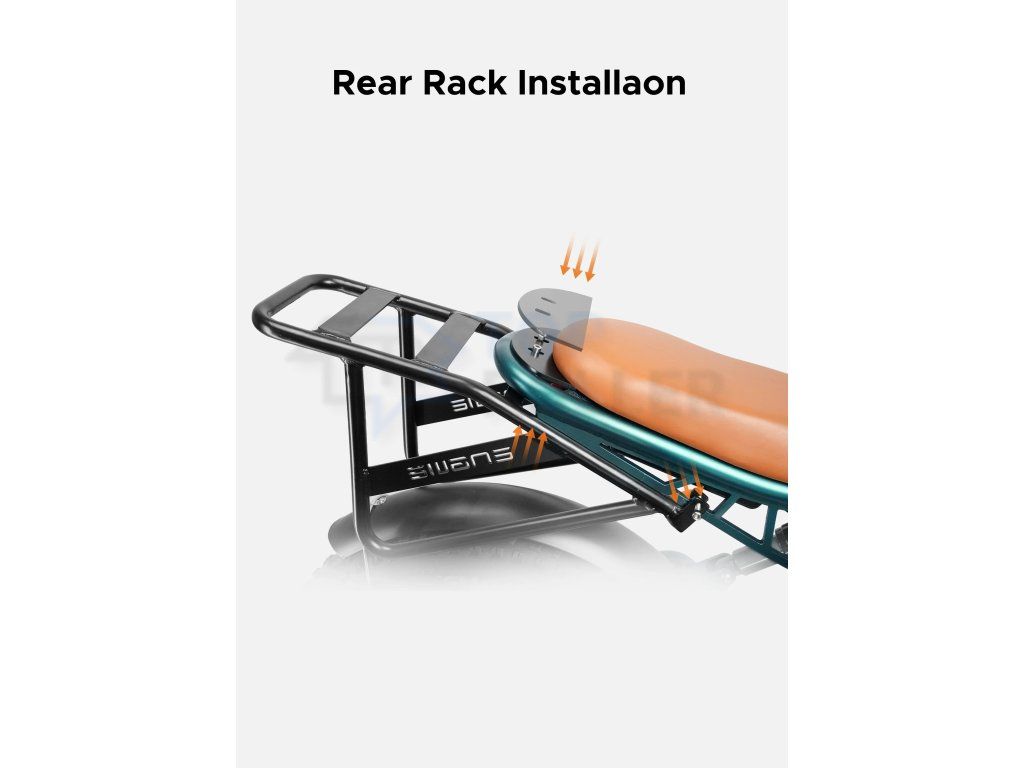 Esztétikus megjelenés: A csomagtartó dizájnját úgy alakították ki, hogy tökéletesen illeszkedjen az Engwe M20 modern megjelenéséhez, így nemcsak praktikus, hanem stílusos kiegészítővé is válik.